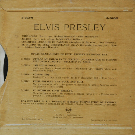 Finalmente, a principios de 1959, la RCA Española publicó por primera vez en el mercado discográfico español una canción de Elvis en un "Long Play". En contraste, la matriz americana de la RCA publicó 3 "Long Play" durante este mismo año en Estados Unidos.
